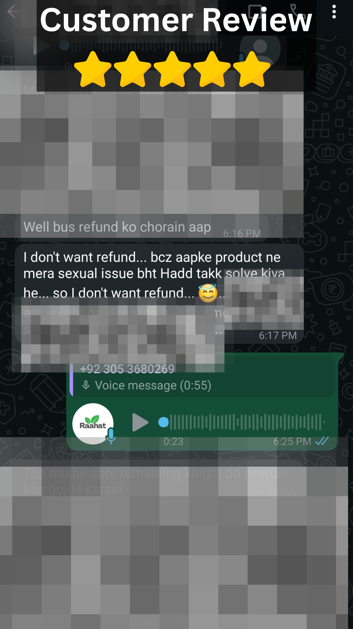 12 days agoMera husband kaafi Pareshan rehte the r mene unke lyen kam timing se mene unko yeh cream mangwa k de and we are happy married couple. Thanks Raahat Store " Please hide my information ππ»